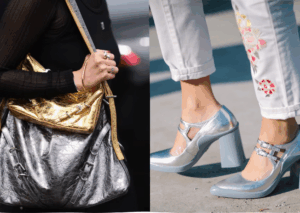 Un zapato metalizado, un bolso o accesorios son uno de los recursos más fáciles para elevar un conjunto básico.